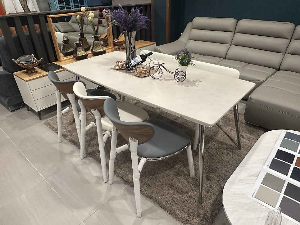 천연 가죽 100% 쇼파, 세라믹 식탁,